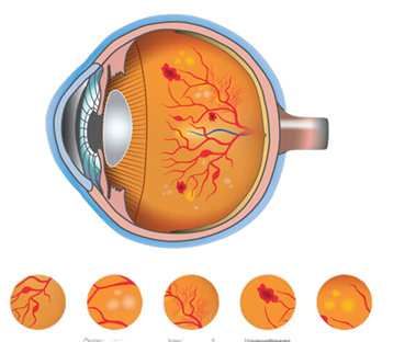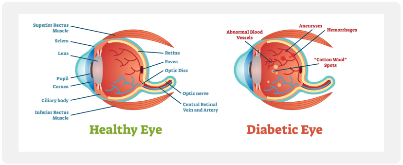 Diabetic retinopathy is a serious eye condition that affects people with diabetes, caused by damage to the tiny blood vessels in the retina. High blood sugar levels can weaken or block these vessels, leading to fluid leakage, bleeding, or abnormal new vessel growth. Over time, this can result in blurred vision, floaters, or even permanent blindness if untreated.